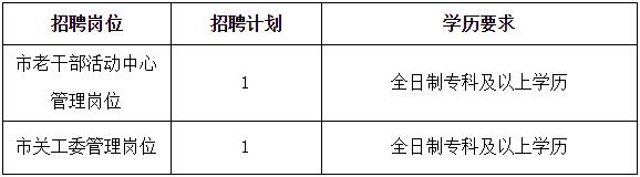 因工作需要,市委老干部局?jǐn)M招聘2名工作人員?,F(xiàn)將有關(guān)事項(xiàng)公告如下:
