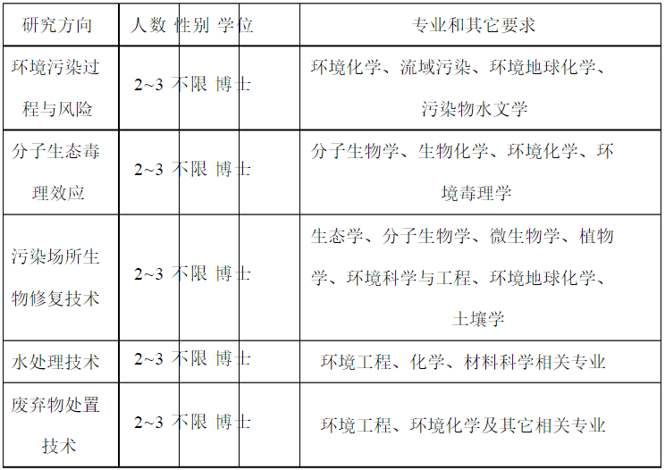 研究領(lǐng)域:廢棄物處置技術(shù)、水處理技術(shù)、大氣污染控制、環(huán)境毒理學(xué)、環(huán)境修復(fù)技術(shù)、環(huán)境監(jiān)測(cè)技術(shù)等。