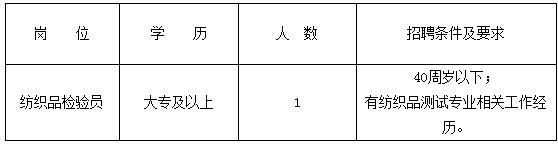 因工作需要,現(xiàn)面向社會招聘聘用制檢驗工作人員1名,具體情況如下: