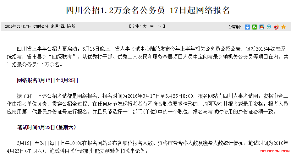 四川公招1.2萬余名公務員,“四級聯(lián)考”今年只招一次