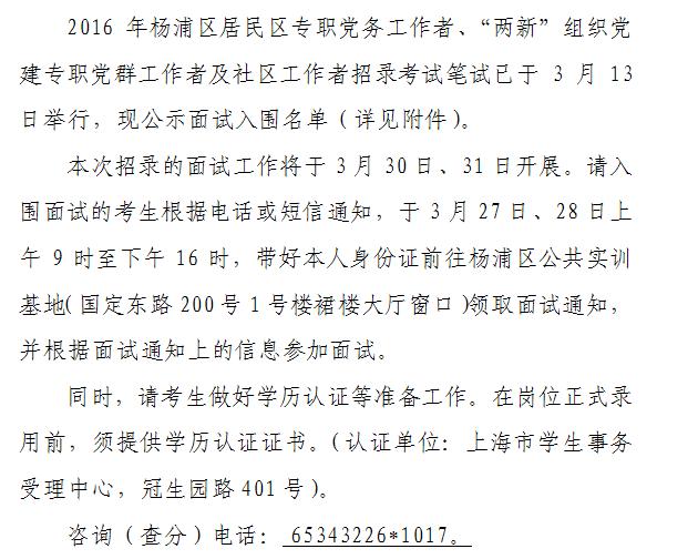 2016上海楊浦區(qū)居民區(qū)專職黨務(wù)、“兩新”組織黨建專職黨群及社區(qū)面試公告