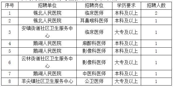 三、部分緊缺崗位因報(bào)名人少確實(shí)無(wú)法形成競(jìng)爭(zhēng)的,按以下辦法處理:東亭街道社區(qū)衛(wèi)生服務(wù)中心和云林街道社區(qū)衛(wèi)生服務(wù)中心同意核定2個(gè)臨床(全科)醫(yī)師崗位;羊尖鎮(zhèn)社區(qū)衛(wèi)生服務(wù)中心和錫北鎮(zhèn)社區(qū)衛(wèi)生服務(wù)中心同意核定1個(gè)中醫(yī)科醫(yī)師崗位。凡報(bào)名上述單位相應(yīng)崗位的考生,根據(jù)考試總成績(jī),排名在前的考生可自主選擇與其中1家單位簽約。