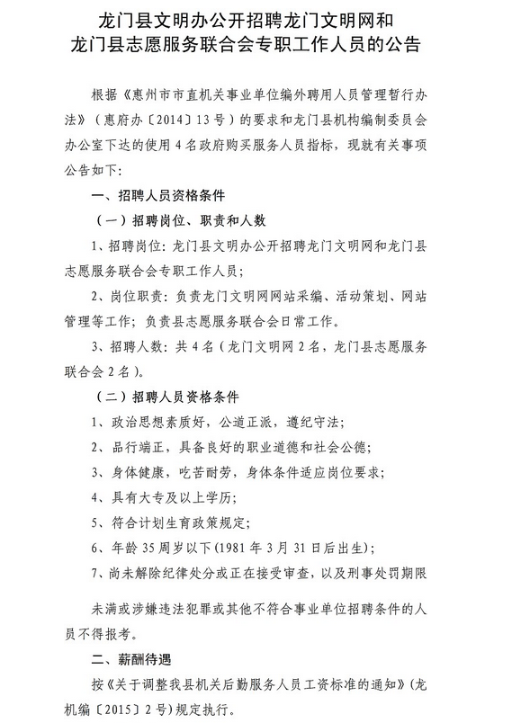 2016廣東龍門縣文明辦招聘政府購買服務(wù)人員4人公告