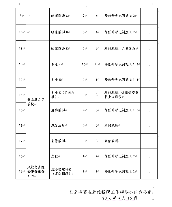 2016山東長島縣事業(yè)單位招聘職位計劃取消調(diào)整公告