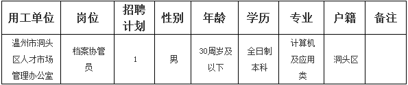 因工作需要,溫州市洞頭人才發(fā)展有限公司決定面向社會(huì)公開招聘1名派遣員工,現(xiàn)將有關(guān)事宜公告如下: