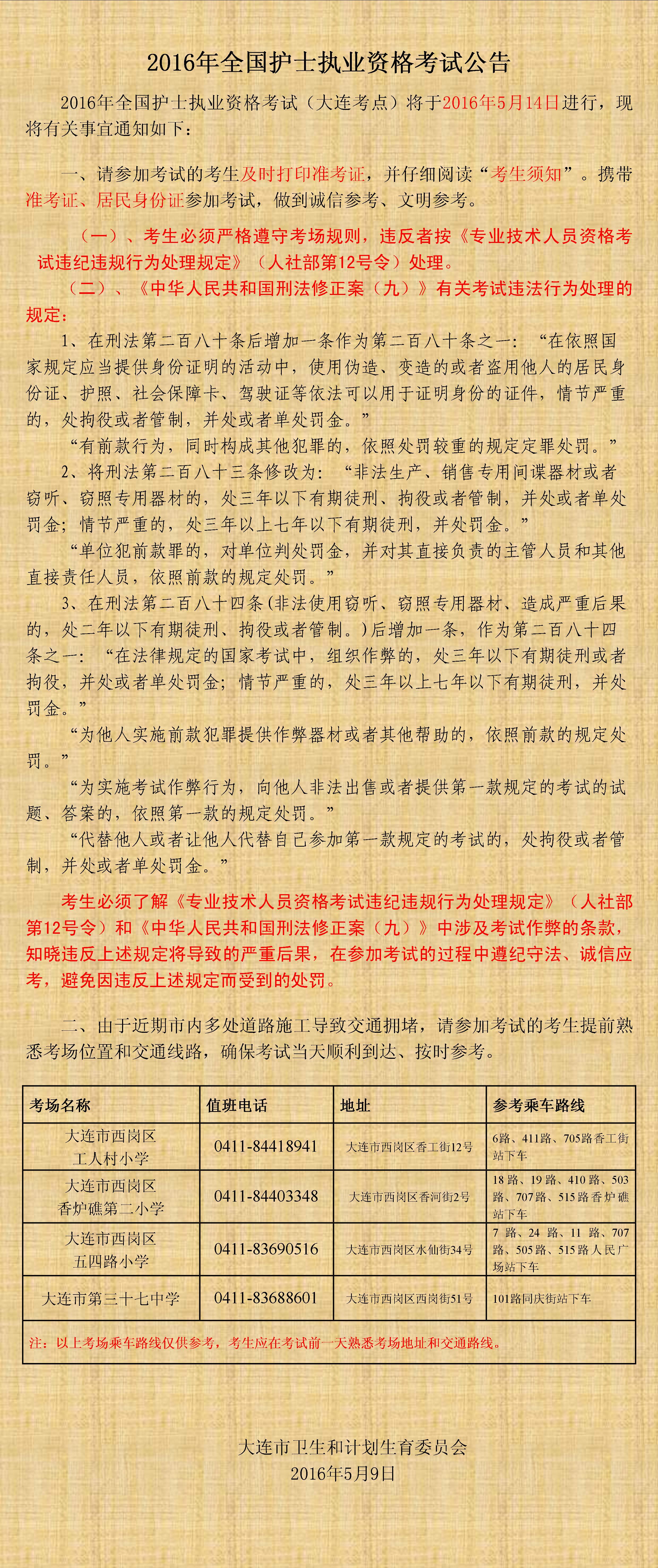 2016遼寧大連護(hù)士執(zhí)業(yè)資格考試公告