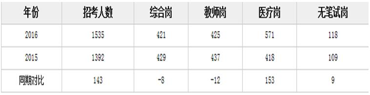 從歷年招聘人數(shù)可以發(fā)現(xiàn),吉林市事業(yè)單位考試招聘人數(shù)呈遞增趨勢??忌辛烁嗟膷徫豢梢赃x擇,同時(shí)本次考試中醫(yī)療崗仍以571人的招聘人數(shù)位居招聘榜首,綜合崗和教師崗招考人數(shù)略微下降。符合條件的廣大考生可以抓住本次機(jī)會(huì)。歷年招聘情況入下表: