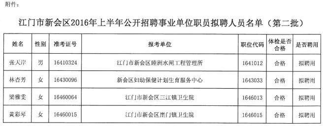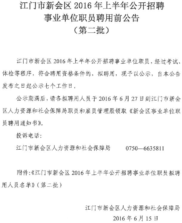 2016上半年廣東江門市新會(huì)區(qū)招聘事業(yè)單位職員聘前公告(第二批)