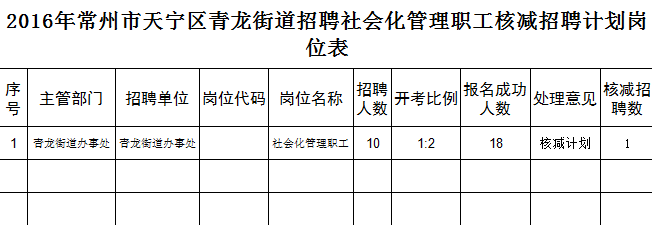 原標(biāo)題:2016年常州市天寧區(qū)青龍街道招聘社會(huì)化管理職工核減招聘崗位的公告