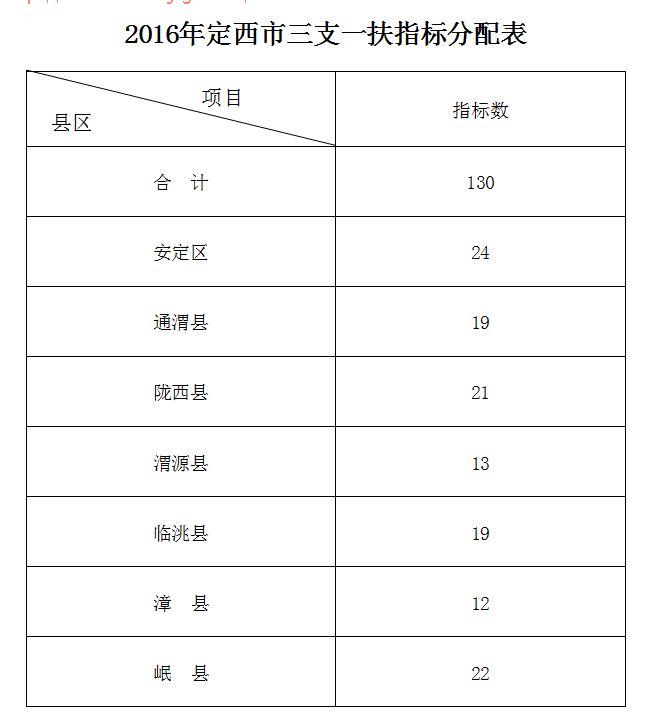 省人社廳以甘人社通〔2016〕210號文件分解下達我市2016年普通高校畢業(yè)生三支一扶計劃指標(biāo)130名。現(xiàn)根據(jù)我市報名總?cè)藬?shù)與省上下達指標(biāo)數(shù)的平均比例,將指標(biāo)分解下達。