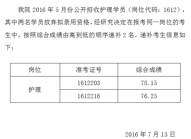 2016安徽蕪湖市中醫(yī)醫(yī)院招收護理學員遞補公告