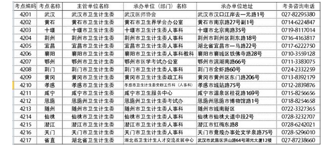 湖北省衛(wèi)生專業(yè)技術(shù)資格考試、護士執(zhí)業(yè)資格考試各考點聯(lián)系表