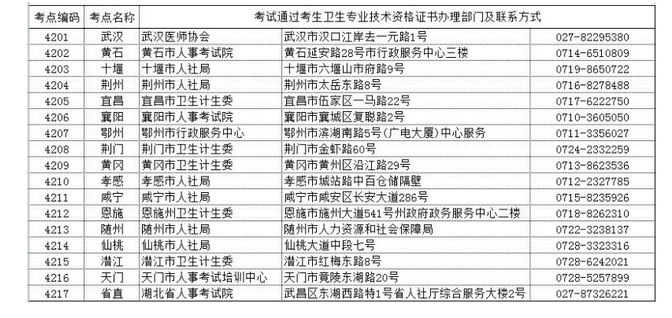 湖北省衛(wèi)生專業(yè)技術(shù)資格考試、護士執(zhí)業(yè)資格考試各考點辦證部門聯(lián)系表