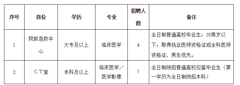 根據(jù)我院工作發(fā)展需要,我院CT室及120急救中心擬招聘工作人員5名,具體事項(xiàng)如下: