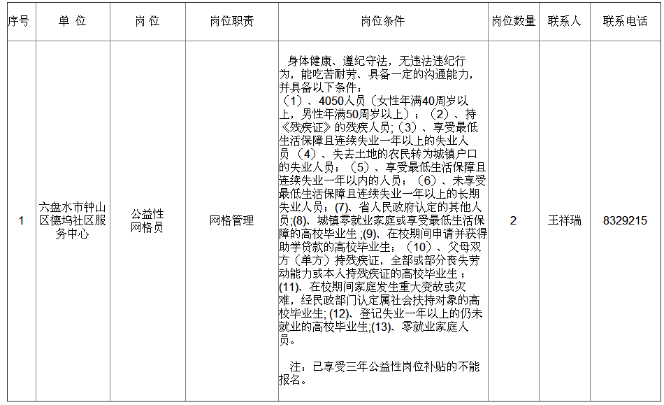 2016貴州六盤水鐘山編外人員招聘公告【招2人】