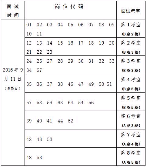 2、時(shí)間:2016年9月11日。考生上午7:00報(bào)到,7:30未報(bào)到視為棄權(quán)。上午8:00開始面試。