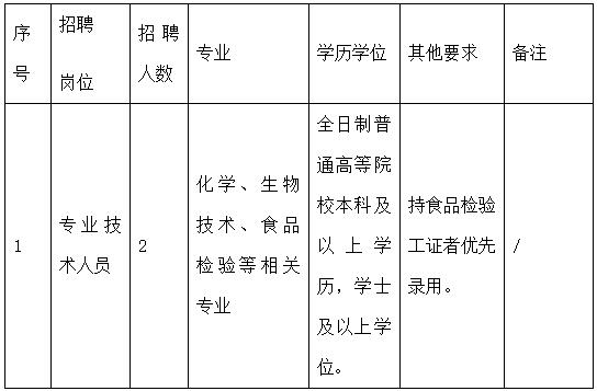武夷山市茶葉產(chǎn)品質(zhì)量檢驗(yàn)所(以下簡(jiǎn)稱茶檢所)是武夷山市市場(chǎng)監(jiān)督管理局下屬事業(yè)單位,負(fù)責(zé)武夷山市茶葉、酒類、大米、醬油、食醋、蔬菜等產(chǎn)品的理化、衛(wèi)生指標(biāo)檢驗(yàn)和茶葉感官審評(píng),2014年6月獲得檢驗(yàn)檢測(cè)機(jī)構(gòu)資質(zhì)認(rèn)定證書(證書編號(hào):F2014132005),具備茶葉、大米、醬油、食醋、蔬菜、黃酒等35個(gè)產(chǎn)品的檢驗(yàn)?zāi)芰ΑR蚬ぷ餍枰?,茶檢所擬向社會(huì)公開招聘專業(yè)技術(shù)人員2名,現(xiàn)將招聘有關(guān)事項(xiàng)公告如下: