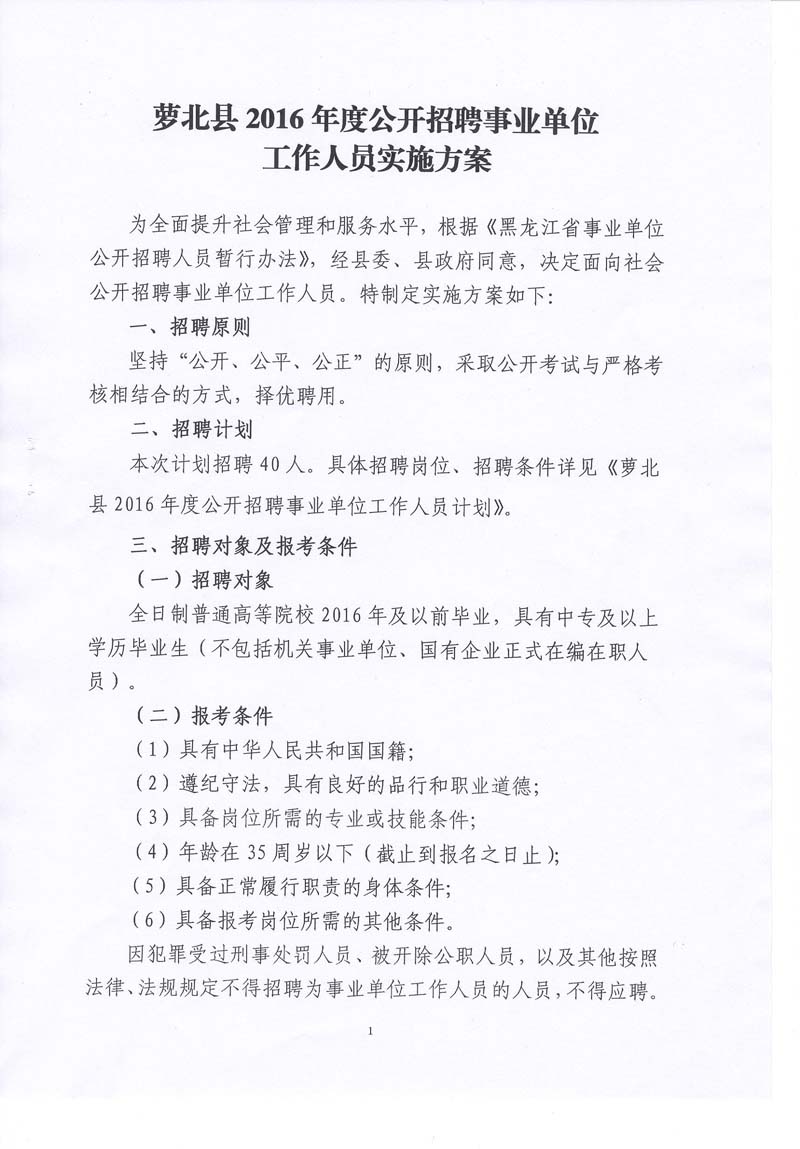 2016年度鶴崗市蘿北縣公開招聘事業(yè)單位工作人員公告【40人】