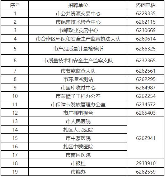 用人單位咨詢電話如下: