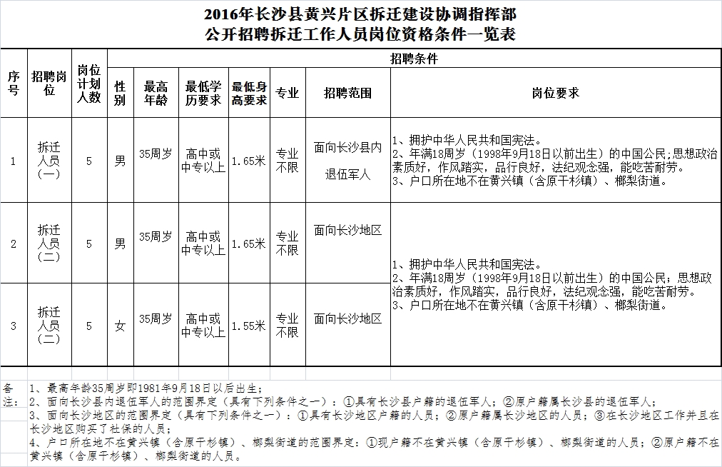 2016湖南長(zhǎng)沙縣黃興片區(qū)拆遷建設(shè)協(xié)調(diào)指揮部考試招聘征地拆遷工作人員公告