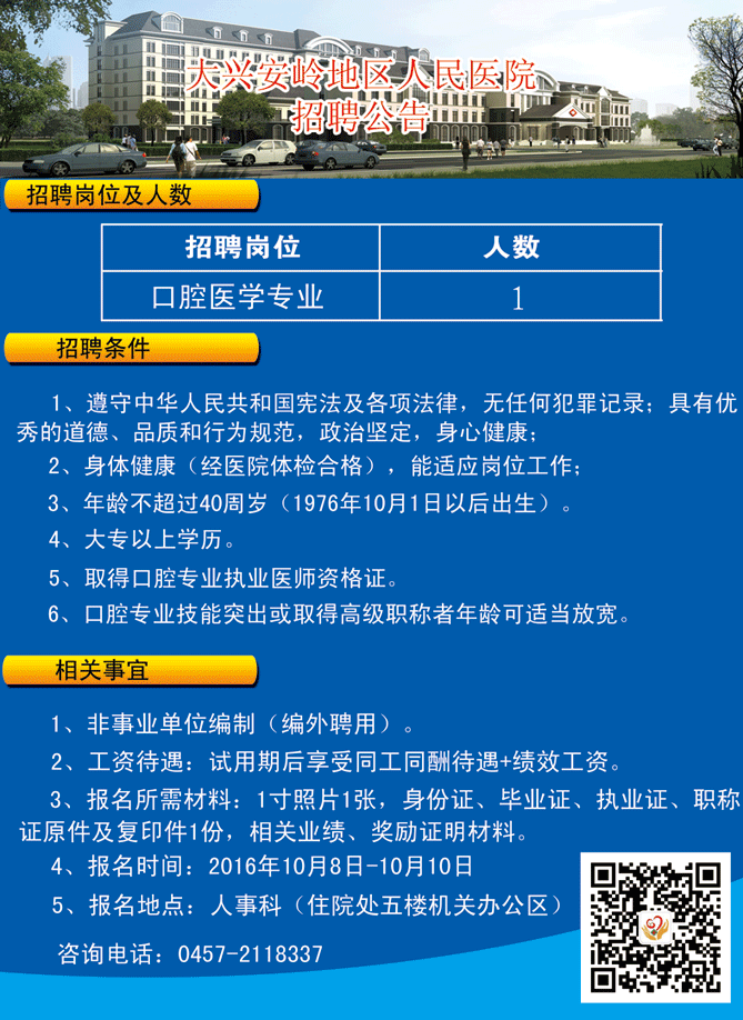 2016黑龍江大興安嶺地區(qū)人民醫(yī)院口腔醫(yī)學專業(yè)招聘公告【招1人】