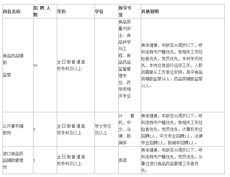 原標題:呼和浩特市賽罕區(qū)食品藥品監(jiān)督局勞務派遣制員工招聘啟事