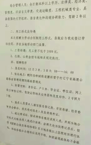 2016遼寧省高速公路路政管理局朝陽路政管理處招聘【招15人】