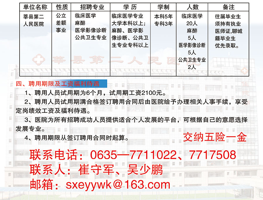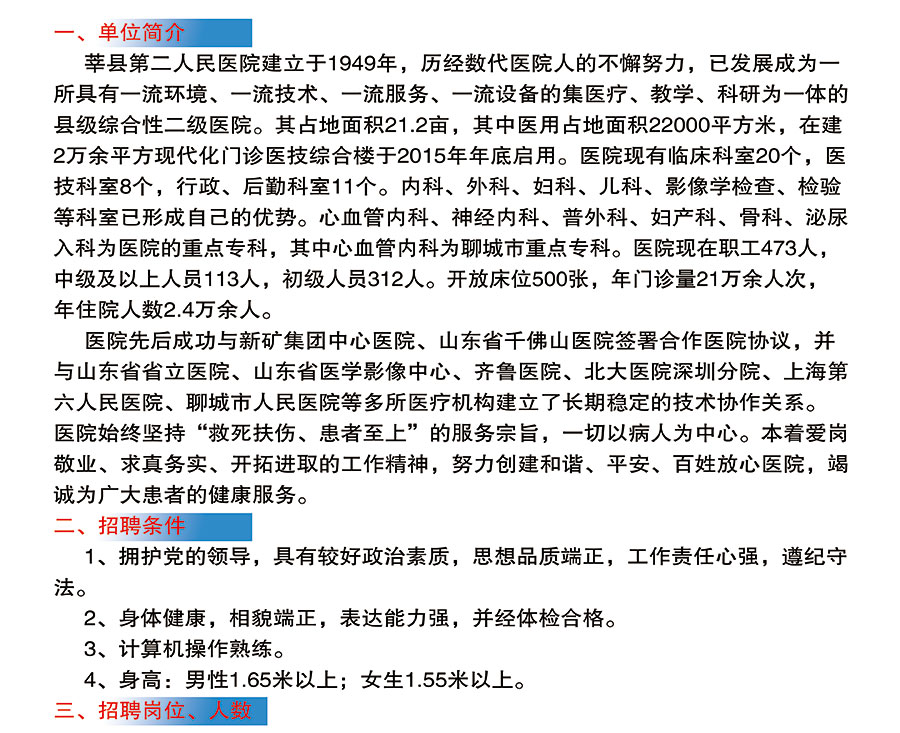 2017山東莘縣第二人民醫(yī)院招聘公告【招32人】