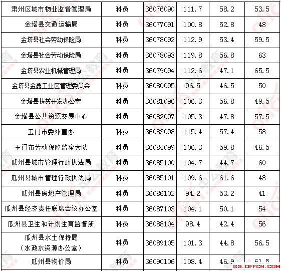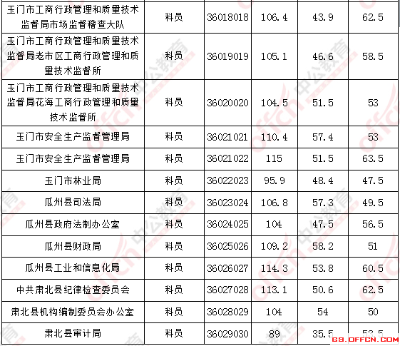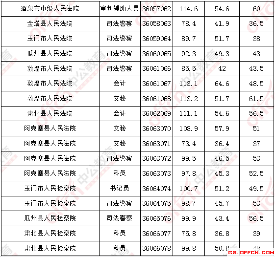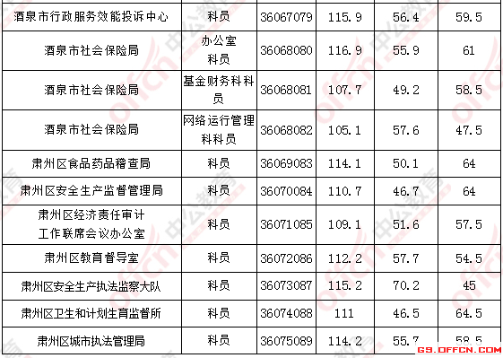 2017年甘肅酒泉公務(wù)員面試入圍最低分?jǐn)?shù)線