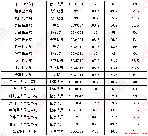 2017年甘肅平?jīng)龉珓?wù)員面試入圍最低分?jǐn)?shù)線