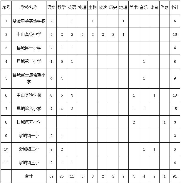 根據(jù)紫金中學(xué)實(shí)驗(yàn)等縣城的缺編缺科情況,經(jīng)研究同意,選調(diào)一批教育教學(xué)能力較強(qiáng)的教師充實(shí)到相應(yīng)任教。為確保選調(diào)工作公開、公平、公正地進(jìn)行,現(xiàn)就有關(guān)事項(xiàng)通告如下: