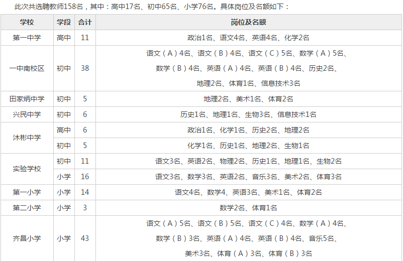 教師考試網(wǎng)校備考群:457858428為城區(qū)教育教學工作的正常開展,按照《興寧市城區(qū)部分中小選聘教師的有關規(guī)定》(興教[2014]49號),現(xiàn)將2017年暑期城區(qū)10所中小選聘教師相關事項公告如下: