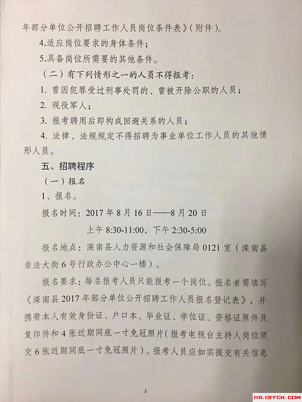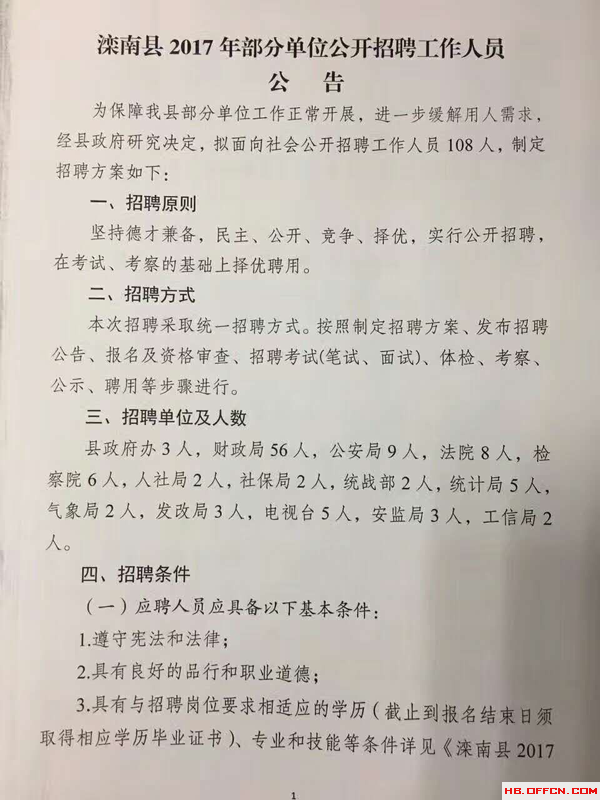2017年灤南縣事業(yè)單位招聘108人公告