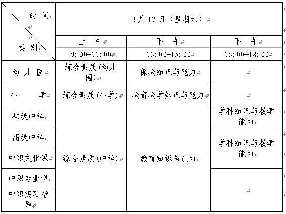 1.全國(guó)中小學(xué)教師資格考試日期為2018年3月17日,具體時(shí)間安排如下: