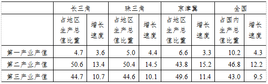 表 2010年三大經濟圈產業(yè)結構及增長速度(%)