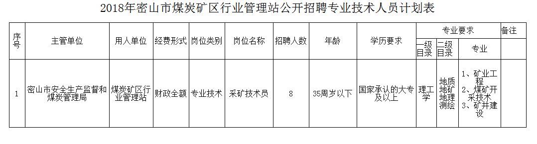 2018年密山市煤炭礦區(qū)行業(yè)管理站公開招聘專業(yè)技術(shù)人員計(jì)劃表(拖拽圖片另查看)