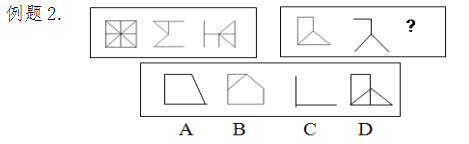 圖形推理試題主要考查應(yīng)考者抽象推理的能力。要求考生從四個備選答案中選擇最符合規(guī)律的一個,替代題干中的問號,使圖形呈現(xiàn)出一定的規(guī)律性。試題包括多種類型,僅舉其中一種類型為例。