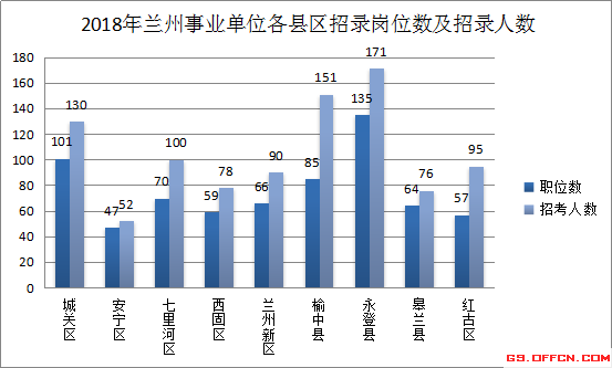 2018蘭州市事業(yè)單位各地區(qū)職位數(shù)與招錄人數(shù)