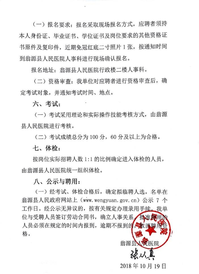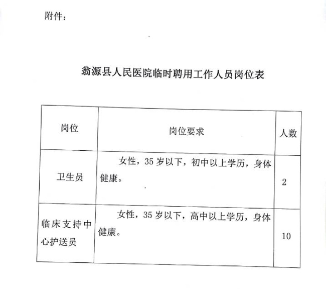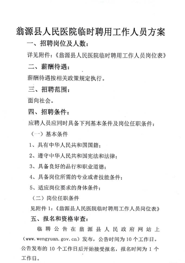 2018廣東韶關(guān)市翁源縣人民醫(yī)院臨時(shí)聘用人員12人方案