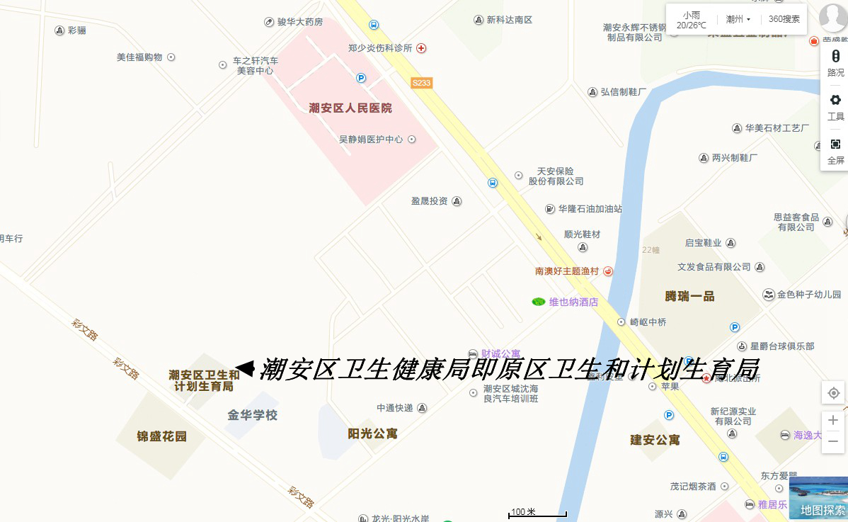 潮州市潮安區(qū)衛(wèi)生健康局,地址:潮州市潮安區(qū)彩文路86號區(qū)衛(wèi)生健康局(候考室設一樓)。