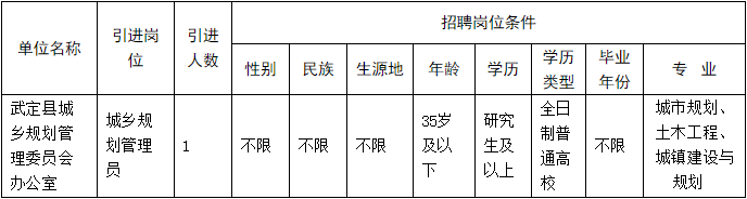 通過武定縣住房和城鄉(xiāng)建設(shè)局信息公開網(wǎng)站(http://cxwd.xxgk.yn.gov.cn/Z_M_003/?departmentid=6784)向社會公布引進的單位、崗位、數(shù)量、資格條件等有關(guān)情況。