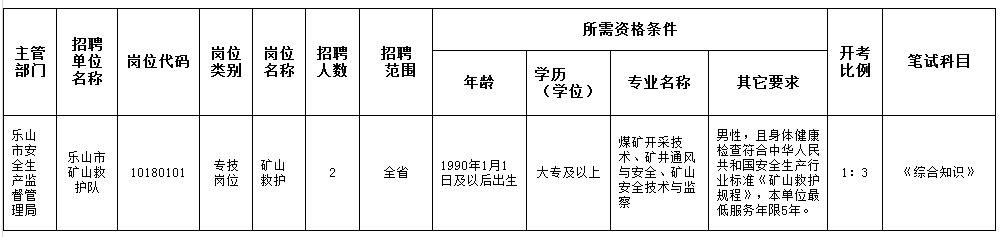 樂山市礦山救護隊(崗位代碼:10180101)原公告崗位類別一欄“工勤崗位”更改為“專技崗位”,