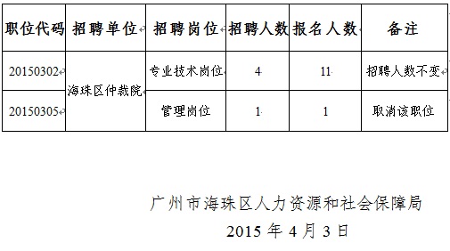 2015年廣東省海珠區(qū)勞動(dòng)人事?tīng)?zhēng)議仲裁院招聘事業(yè)編制崗位調(diào)整公告