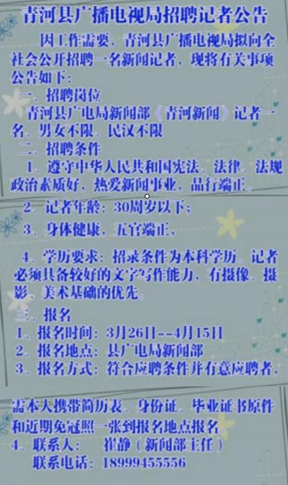 原標題:青河縣廣電局招聘記者公告