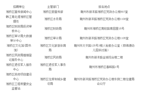原標(biāo)題:2019年潮州市湘橋區(qū)公開招聘事業(yè)單位工作人員公告
