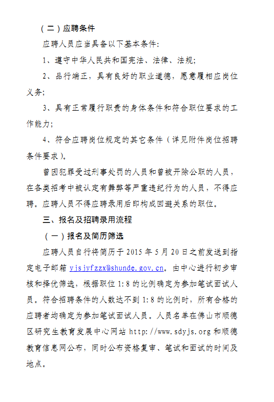 2015年廣東省佛山市順德區(qū)研究生教育發(fā)展中心招聘2人公告