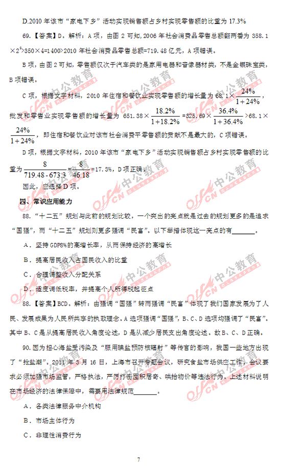 2012年上海市公務(wù)員考試行測(cè)(A卷)部分及答案解析