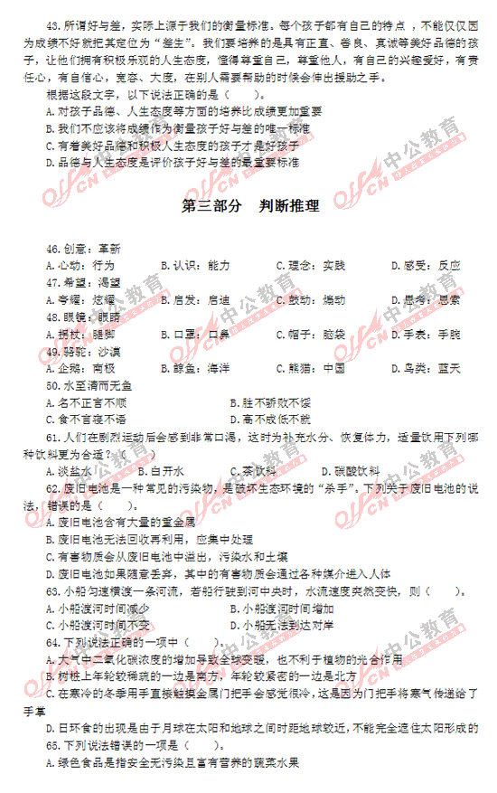 2012年廣東縣以上公務員考試行測