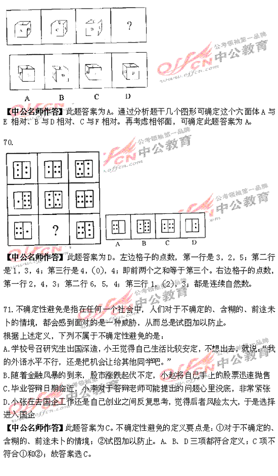 福建省2010年秋季公務(wù)員考試行測(cè)及解析