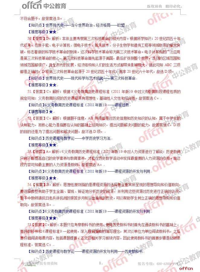 2017年江西教師招聘《初中歷史》試題答案及解析